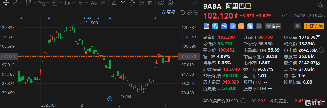 格隆汇4月7日丨 阿里巴巴(BABA.US)涨近4%,报102.1美元,总市值2642亿美元。2023阿里云峰会将于4月11日在北京召开,包括阿里巴巴董事局主席兼 CEO 张勇,阿里云智能首席技术官周靖人、阿里云智能全球商业总裁蔡英华在内的主要负责人将出席主论坛。消息人士称,阿里将在11日推出大模型,18日推...