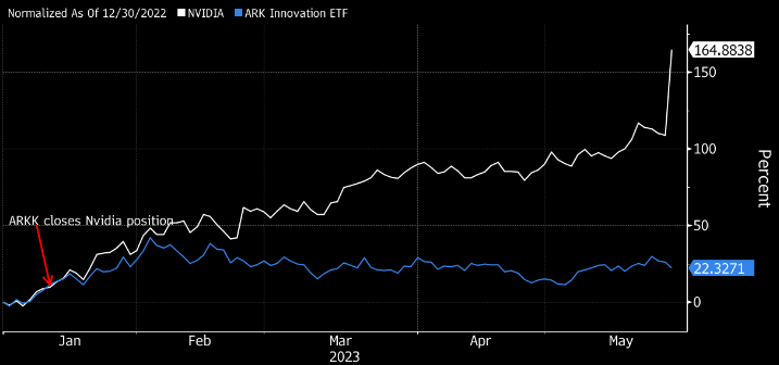 看图:Cathie Wood的旗舰基金1月初卖掉英伟达 错失5600亿美元的飙升