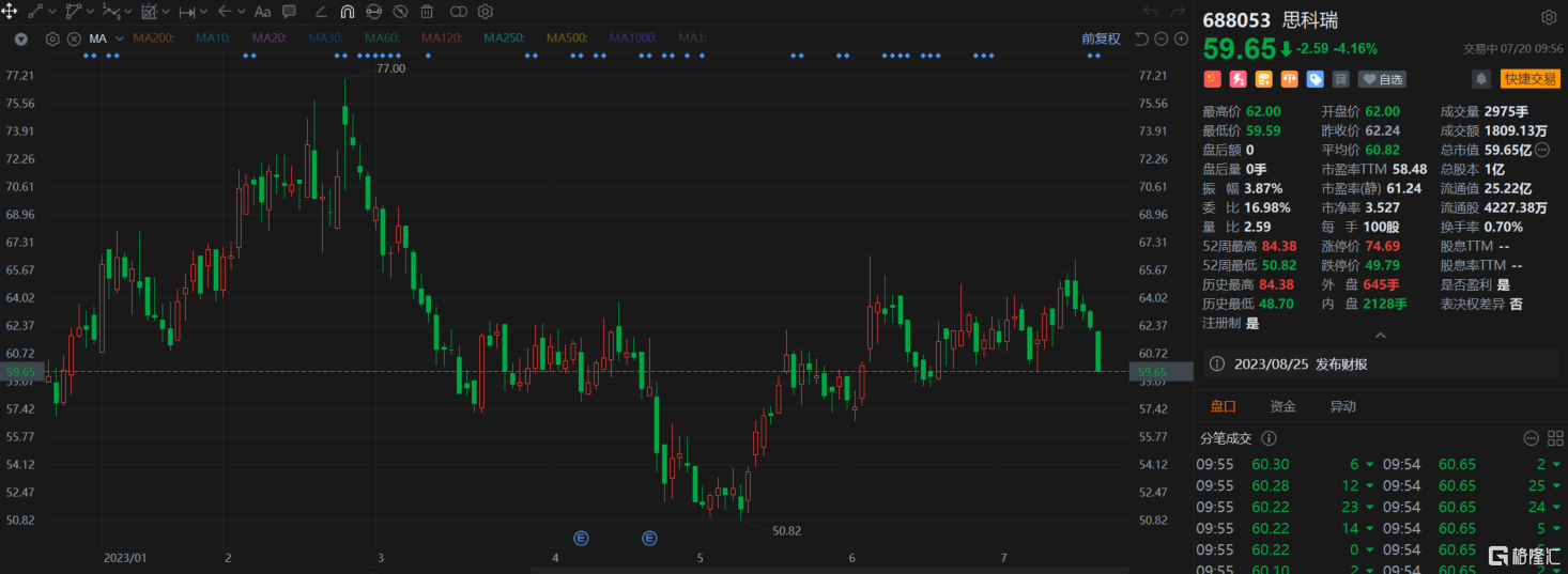 7月20日消息,创业板新股N智信大涨136% ,触发临时停牌。截至发稿,股价报93.60元,最新市值49.92亿元。