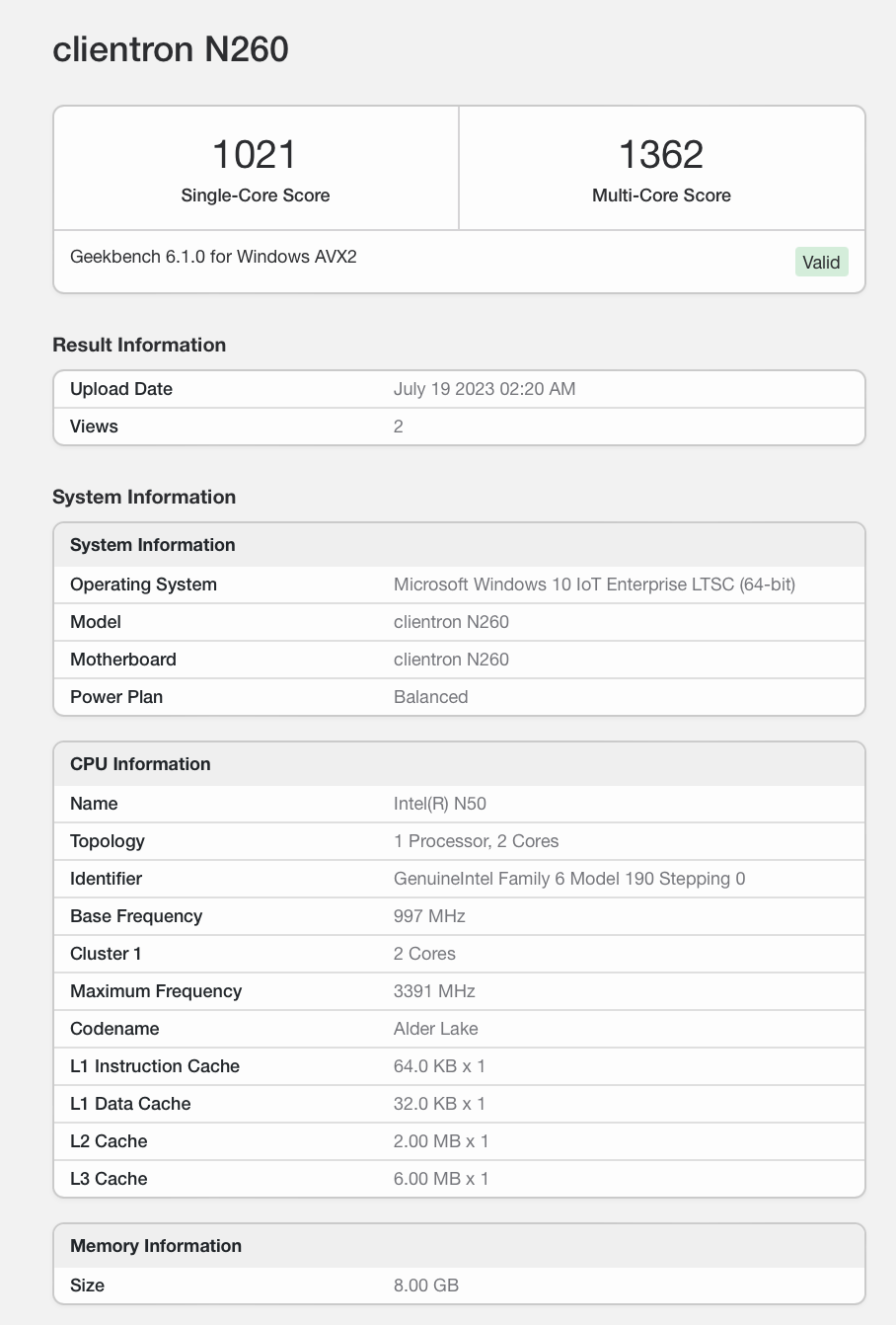 今日,该系列处理器的基础型号 N50 出现在了 Geekbench 中。