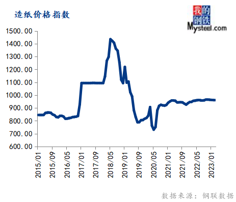 3月份造纸价格指数为957.76,环比下跌0.35%,同比上涨0.20%。