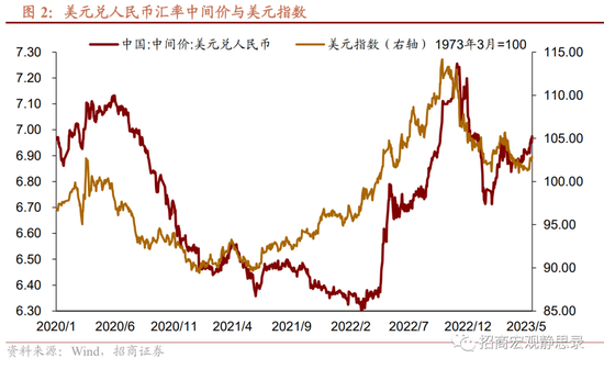 2)近期美国经济数据尚可,债务上限因素加持之下,美元指数反弹。亚特兰大联储GDPNow模型(5月17日)预计Q2美国实际GDP环比折年率2.9%,对应同比为2.3%。衰退预期也理应推后。此外,美国债务上限问题略微复杂,我们以及市场都认为最终不会违约,但两党博弈仍会加剧市场扰动,所以不乏会有投资者试图持币观望,那么就会增加美元现金需求。